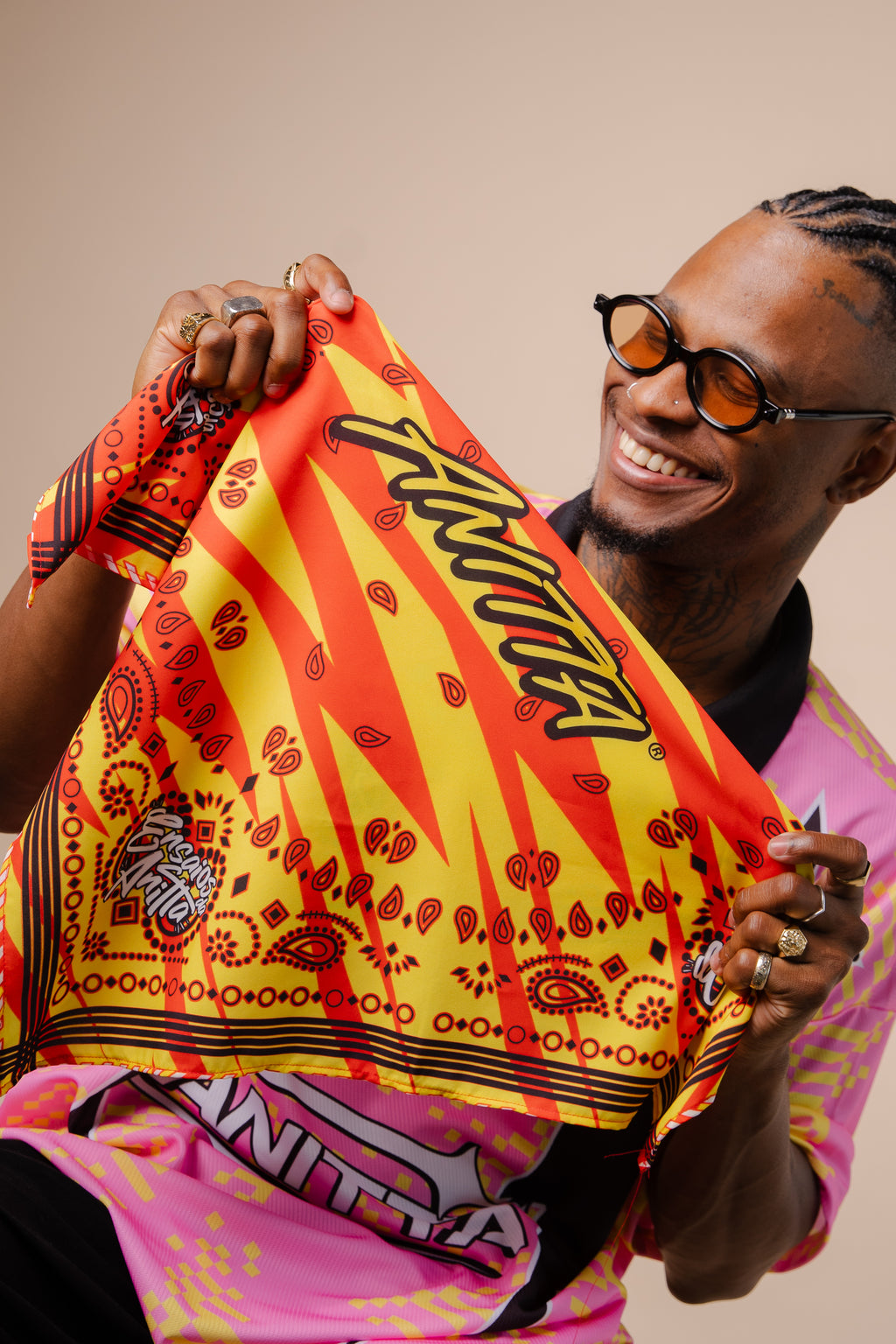 O Lenço Ensaios da Anitta 2026 chega cheio de personalidade para quem quer entrar no clima vibrante dos ensaios e do pré-carnaval. Com estampa exclusiva inspirada na energia explosiva de Anitta, a peça mistura tons intensos de vermelho e amarelo em um design cheio de movimento, detalhes gráficos e o logo oficial dos Ensaios. Confeccionado em tecido leve e confortável (95% poliéster e 5% elastano), o lenço oferece toque suave, caimento fluido e versatilidade para usar de várias formas — no pescoço, como acessório de cabelo, amarrado na bolsa ou até como peça fashion no look do dia. Com tamanho de 60 cm x 60 cm, ele é perfeito para complementar produções estilosas, temáticas e cheias de atitude.